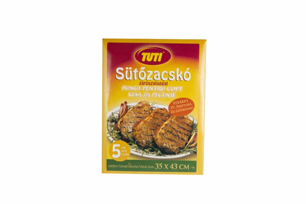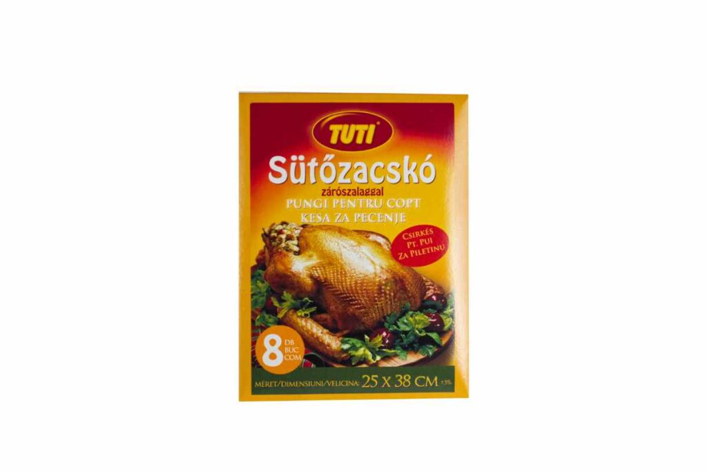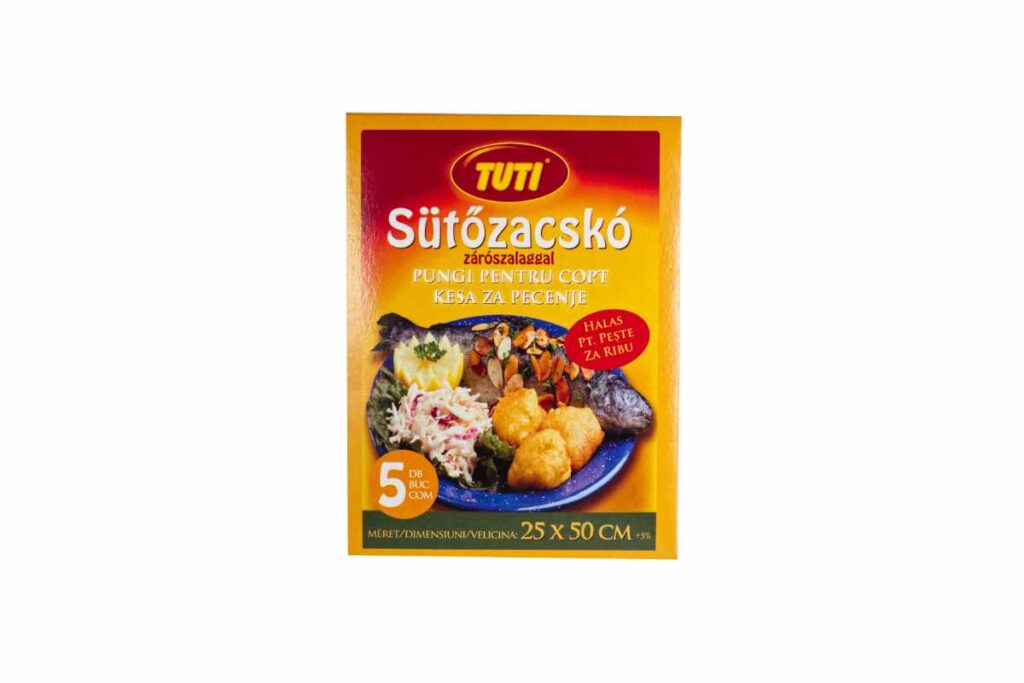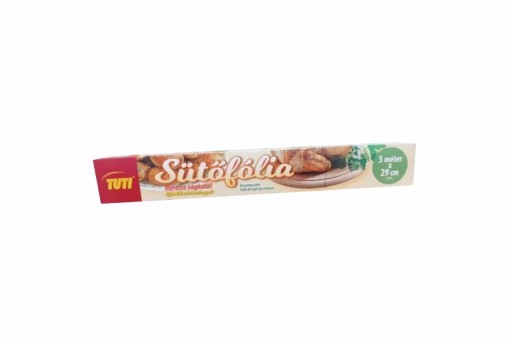 Sütőipari termékek TUTI sütőfólia dobozos 3 m x 29 cm Méret: 29 cm x 3 mKiszerelés:24 darab/gyűjtő100 gyűjtő/raklap TUTI sütőfólia csirkés Méret: 25 x 38 cmKiszerelés:8 db/doboz100 doboz/gyűjtő60 gyűjtő/raklap TUTI sütőfólia halas Méret: 25 x 55 cmKiszerelés:5 db/doboz100 doboz/gyűjtő60 gyűjtő/raklap TUTI sütőfólia húsos Méret: 45 x 55 cmKiszerelés:3 db/doboz100 doboz/gyűjtő60 gyűjtő/raklap TUTI sütőfólia steak Méret: 35 x 43 cmKiszerelés:5 db/doboz100 doboz/gyűjtő60 gyűjtő/raklap TUTI sütőpapír 15 méter Méret: 15 m x 33 cmKiszerelés:60 tekercs/gyűjtő60 gyűjtő/raklap TUTI szilikonos sütőpapír 8 méter Méret: 8m x 38 cmKiszerelés:50 tekercs/gyűjtő60 gyűjtő/raklap TUTI szilikonos sütőpapír íves (16 ív) Méret: 38 cm x 42 cmKiszerelés:24 darab/gyűjtő108 gyűjtő/raklap Vissza a termékekhez